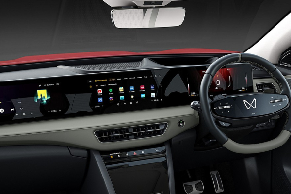 Интерьер же, наоборот, видно вполне отчетливо. И он у новинки такой же, как у соплатформенного купеобразного электрокара, не считая, конечно, наличия третьего ряда кресел. Mahindra XEV 9S получил аналогичные переднюю панель, двухспицевый руль с сенсорными кнопками, трехэкранное табло и сенсорную же полоску под центральными дефлекторами обдува. Для модели еще заявлен панорамный люк. Ну и в списке оборудования наверняка значатся вентиляция сидений, беспроводная зарядка, камеры кругового обзора и адаптивный круиз-контроль.