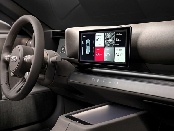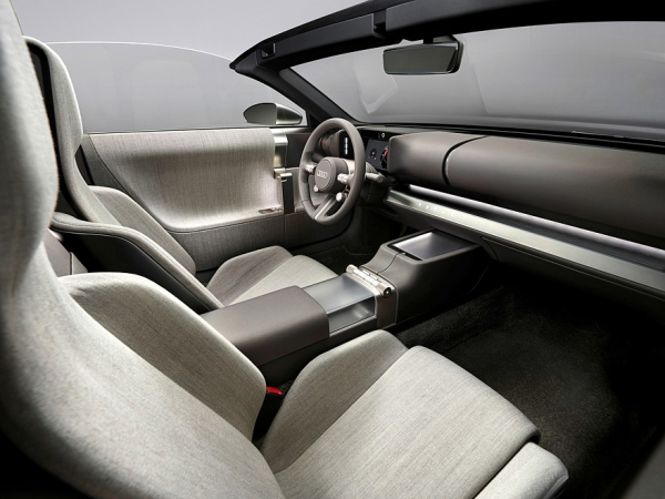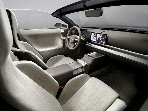 Салон Audi Concept C тоже вполне отвечает определению «радикальная простота», в нём чувствуется прямо-таки скандинавский минимализм, который лишь немного оживляют ручки, рукоятки и кнопки из анодированного алюминия. На приборный экран можно вывести изображения стрелочных циферблатов. 10,4-дюймовый мультимедийный планшет сделан убирающимся в недра передней панели, чтобы не маячил перед глазами, когда он не нужен.