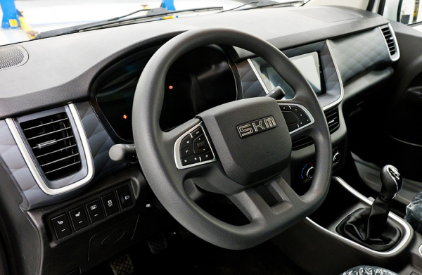 Первенцем нового бренда стала модель SKM М7, которая будет представлена на российском рынке в двух модификациях – цельнометаллический фургон и грузопассажирский минивэн. Оба варианта оснащаются бензиновым 2,0-литровым атмосферником, максимальная мощность которого составляет 137 л.с., а крутящий момент – 194 Нм. Двигатель работает в паре с пятиступенчатой механической коробкой передач. Модель имеет задний привод с мостом и рессорной подвеской.