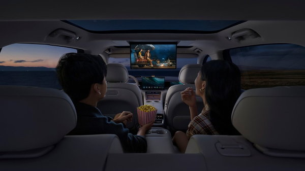 В салоне перед водителем располагается трёхспицевое рулевое колесо (идеальный круг, что нынче редкость) и дисплей, исполняющий роль виртуального щитка приборов. Для переднего пассажира предусмотрен отдельный экран аналогичных размеров, а центральную часть занимает «парящий» тачскрин информационно-развлекательной системы, его диагональ равна 16,1 дюйма. Кроме того, предусмотрен дополнительный большой экран для пассажиров второго ряда сидений.