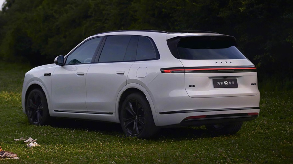 У AITO M7 более короткая корма по сравнению со «старшим братом», в верхней части багажной двери установлен лаконичный спойлер, а фонари, тоже оформленные в виде единого элемента, имеют более узкую форму и иной световой рисунок. У кроссовера есть рейлинги на крыше, утопленные дверные ручки, обычные наружные зеркала. Весь декор на кузове может быть либо глянцевым чёрным, либо хромированным (в зависимости от версии), «под стать» подобраны и колёсные диски.