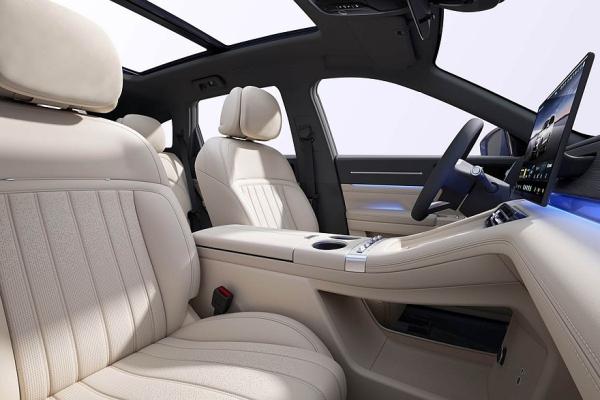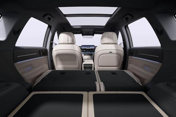 В салоне Jetour Shanhai L7 Plus – раздельные экраны приборки и мультимедийной системы. Причем центральный планшет можно наклонять влево или вправо на 10 градусов. Электроника – с искусственным интеллектом. Кроссоверу также достались трехспицевый руль и двухэтажный тоннель, боковые дефлекторы обдува сделали вертикальными. На тоннеле находится площадка для беспроводной зарядки, ниже идут ряд «рычажков» и пара неприкрытых подстаканников. В расположенный между передними креслами подлокотник встроен холодильник. Кроссовер будет доступен в пяти- или семиместном исполнении.