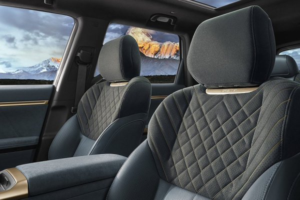 Салон рассчитан на пятерых седоков, перед водителем располагается трёхспицевое рулевое колесо с усечённым ободом и физическими кнопками, а за ним находится виртуальная приборка. По центру передней панели расположен интегрированный тачскрин информационно-развлекательной системы, его диагональ составляет 14,6 дюйма. Известно, что модель, предназначенная для российского рынка, получила расширенный зимний пакет.