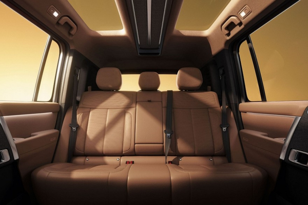 Несмотря на солидные габариты кроссовер строго пятиместный. В салоне установлены раздельные экраны приборки (8,88 дюйма) и мультимедийной системы (15,4 дюйма). Под центральным планшетом есть ряд физических клавиш. На тоннеле – площадка для беспроводной зарядки, отвечающая за выбор режима движения шайба и неприкрытые подстаканники. Управление трансмиссией возложено на подрулевой рычажок. Объем багажника – 715 литров, со сложенными спинками второго ряда – 1818 литров.