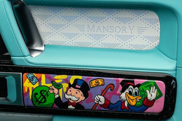 С подачи Mansory Алек Монополи начал расписывать автомобили. В показанном на фотографиях первом из десяти экземпляров Mansory Art Piece AL3C MONO907Y использованы образы классической настольной игры «Монополия» (дядя с усами — это Мистер Монополия, главный символ игры), чаще всего это знак доллара. Брызги краски на боковинах подчёркивают импровизационный характер раскраски, а разноцветные ободки 24-дюймовых колёсных дисков Mansory FC.5 — игровую эстетику автомобиля. Складная крыша в данном случае выполнена в чёрном цвете, но заказчики следующих девяти экземпляров могут выбрать более весёленькие цвета.