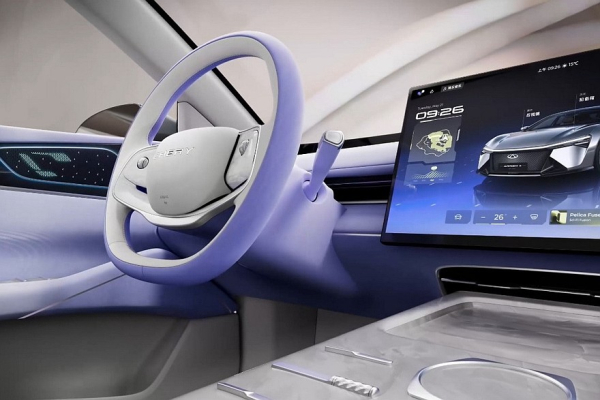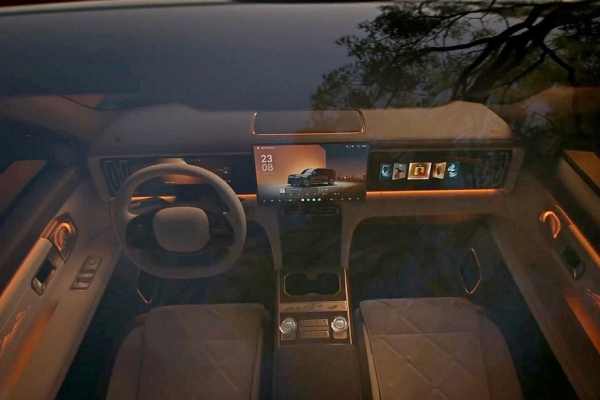 Главные фишки экстерьера – прямоугольные фары с пикселями, пиксельное же табло, которое объединяет головную оптику, внушительные бамперы и вертикальные задние фонари. Над лобовым стеклом установлен лидар, ведь Chery Tiggo X обещан автопилот Falcon 700. Размеры новинки не озвучены.