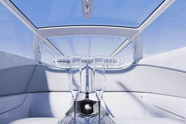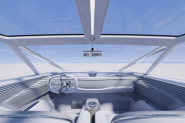 В четырехместном салоне Vision Xpectra – обилие горизонтальных линий на передней панели и дверях. Подголовники кресел сделали «надувными». Между задними сиденьями расположена «парящая» консоль. Разумеется, заявлены искусственный интеллект и автопилот.