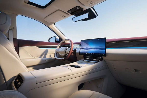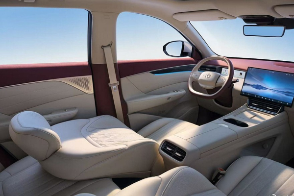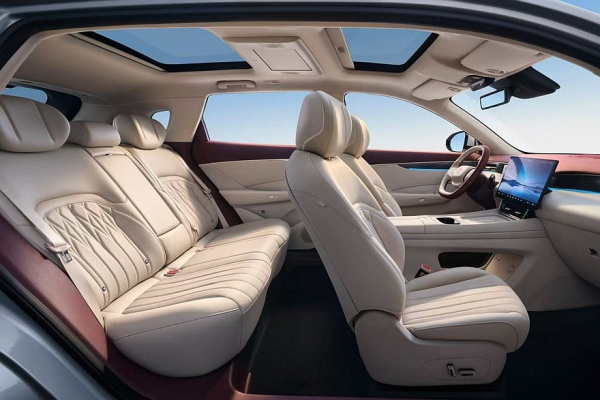 Пятиместный интерьер у гибрида тоже оригинальный. Тут другие передняя панель, руль, центральный тоннель и карты дверей. Внутри Aeolus L8 также установлены раздельные экраны приборки (8,88 дюйма) и мультимедийной системы (15,6 дюйма), тогда как у Dongfeng Huge дисплеи объединены. Отдельного блока управления «климатом» у L8 нет – все настройки вшиты в планшет.