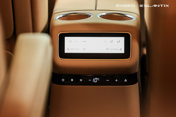 В интерьере трехрядной версии Exeed ET8 центральное место занимает 30-дюймовый экран медиацентра с разрешением 6K и голосовым помощником на базе искусственного интеллекта. Цифровая приборная панель дополнена проекционным дисплеем высокого разрешения с возможностью вывода навигации. Пассажиры второго ряда могут воспользоваться выдвижным 17,3-дюймовым потолочным экраном развлекательной системы. Сиденья всех рядов оснащены электроприводом, подогревом, вентиляцией и массажем, спинки второго ряда имеют регулировку по наклону. Для кресел второго ряда предусмотрена выдвижная оттоманка, сиденье раскладывается с изменением угла наклона самого кресла. Кресла третьего ряда снабжены подогревом и электрорегулировками, а также электроскладыванием.