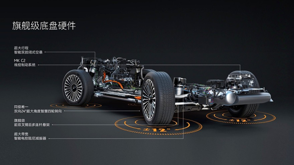 Будучи самым крутым брендом в обойме SAIC, компания IM Motors постаралась обеспечить своему флагманскому кроссоверу достойный дизайн и достойную технику. Платформа собственной разработки рассчитана на 800 В и быструю зарядку. В стандартное оснащение входят полноуправляемое шасси и полностью независимая адаптивная двухкамерная пневмоподвеска: передняя — на двойных поперечных рычагах, задняя — многорычажная. Также в стандартное оснащение входят лидар над лобовым стеклом и очень богатый набор разнообразных электронных ассистентов водителя. Габаритная длина IM LS9 — 5279 мм, ширина — 2000 мм, высота — 1806 мм, колёсная база — 3160 мм. Штатные колёса — 20-, 21- либо 22-дюймовые.