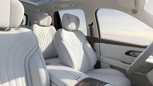 Салон Geely Galaxy M9 имеет посадочную формулу 2+2+2, все кресла оснащены обогревом, кресла первого и второго рядов — ещё и вентиляцией с массажёрами. Дизайн передней панели беззастенчиво позаимствован у кроссоверов Li Auto, но приборная полоска всё-таки фиксированная, а не налеплена на руль, и дополнена цветным 32-дюймовым проекционным экраном на лобовом стекле. Главный «телевизор» на передней панели имеет диагональ 30 дюймов. Для пассажиров второго и третьего рядов предусмотрен потолочный развлекательный экран с диагональю 17,3 дюйма. Штатная 2300-ваттная аудиосистема насчитывает 27 динамиков. В тумбочку между передними креслами встроен термобокс объёмом 9,1 л. Объём багажника при всех задействованных местах — 328 л, при сложенных сиденьях второго и третьего рядов — 2171 л.