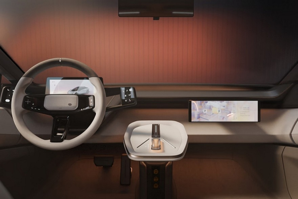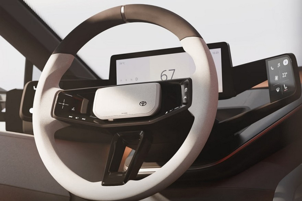 В салоне Corolla Concept – лаконичная передняя панель. Приборный экран прикреплен непосредственно к рулю, плюс у этой конструкции есть боковые секции с кнопками, отвечающими за основные функции (подогрев кресел, настройки «климата» и мультимедиа и т.д.). Перед передним пассажиром расположен широкоформатный дисплей. А посередине установили «столик» с селектором трансмиссии.