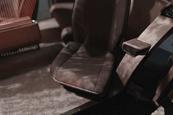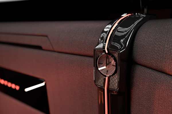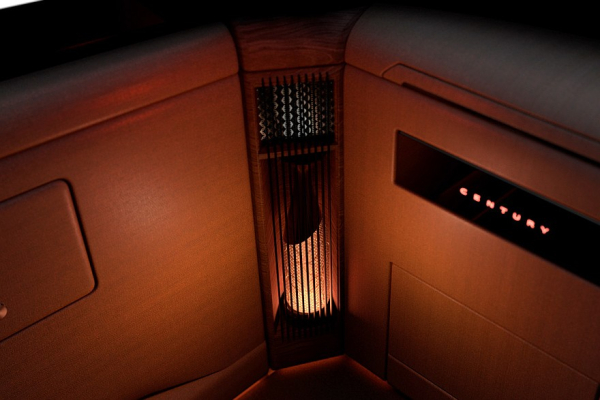 В салоне перед водителем расположены «штурвал», приборный экран и два небольших вертикальных дисплея. Еще один планшет спрятан в передней панели с пассажирской стороны. Century Coupe сделан трехместным – левое пассажирское кресло можно сдвигать и поворачивать. При этом водительское сиденье отделено боковой стеклянной перегородкой с «лазерными лучами». Разумеется, в отделке интерьера использованы дорогие материалы, а посередине передней панели находятся аналоговые часы.