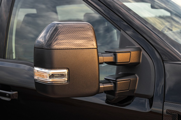 Стандартные пластиковые бамперы заменены силовыми из нержавеющей стали, в передний бампер вмонтированы светодиодные противотуманки и небольшая защитная дуга, под которой прячется 50-дюймовая центральная светодиодная балка. Капот получил центральную вентиляционную вставку из карбона и крупную надпись Hennessey на передней кромке. Также из карбона выполнены шапочки зеркал, расширители колёсных арок и накладка на заднем борту с крупной надписью Hennessey. Под порогами установлены выдвижные подножки с электроприводом и светодиодной подсветкой. Передние крылья украшены вентиляционными накладками из карбона с надписью USA 250.