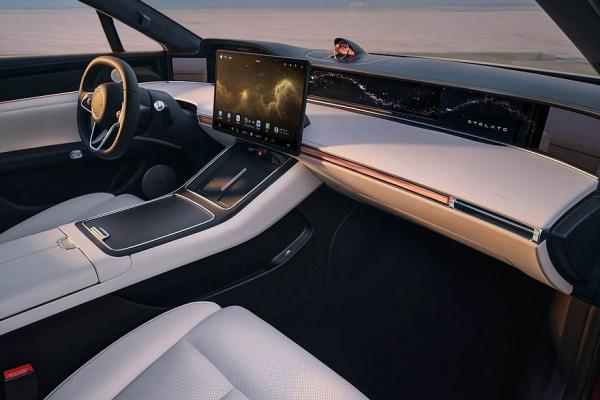 Спереди универсал практически дословно повторил седан, разве что вместо надписи Stelato красуется новая эмблема бренда. Задние фонари состоят из множества диодных «точек» — как и ходовые огни, расположенные под фарами (у фонарей четырехдверки другая начинка). Stelato S9T тоже имеет лидар (разумеется, вся электроника – от Huawei) и выдвижные ручки дверей, сами двери – скорее всего, безрамочные. Любопытно, что пока бренд Stelato пиарит универсал с привычными наружными зеркалами, тогда как для седана еще предусмотрены камеры.