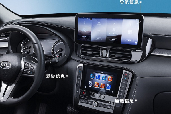 Внешне китайский Infiniti QX50 не изменился – доработан интерьер. Как и прежде, по центру установлены два дисплея, однако верхний планшет теперь возвышается над передней панелью, а не встроен в нее. Из-за этого центральные дефлекторы обдува пришлось перенести под экран (у дореформенной модели они по бокам от тачскрина). Сам планшет крупнее не стал (8 дюймов). Нижний экран (7 дюймов) реформы вовсе не затронули: он все так же в окружении физических кнопок, оставили даже архаичный дисковод.