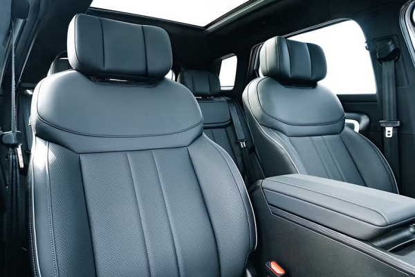 В списке оборудования топового паркетника есть панорамный люк, обогрев лобового стекла, беспроводная зарядка, подогрев руля, передних и задних сидений (передние кресла – еще и с вентиляцией), камеры кругового обзора, адаптивный круиз-контроль, системы мониторинга «слепых» зон и удержания в полосе движения.