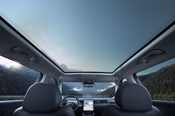 Интерьер функциональный, без дизайнерских экспериментов, но кнопок прискорбно мало: под вертикальным тачскрином диагональю 13,2 дюйма нашлось место лишь для трёх клавиш – «аварийки», блокировки дверей и переключения режимов движения. Всё остальное спрятано в центральный дисплей. Благо удобному джойстику регулировки зеркал удалось выжить. Руль с двумя толстыми спицами неплох, есть беспроводная зарядка мощностью 50 Вт и панорамная крыша площадью 1,45 м² с голосовым управлением шторкой.