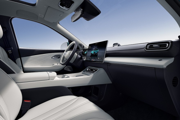В пятиместном салоне установлены раздельные экраны приборки (10,25 дюйма) и мультимедийной системы (15,6 дюйма), они идут уже в базе. В списке оборудования самого дешевого паркетника также значатся: две стеклянные секции в крыше, электропривод багажной двери, вентиляция и подогрев передних сидений, камеры кругового обзора, адаптивный круиз-контроль, системы автоторможения и удержания в полосе движения.