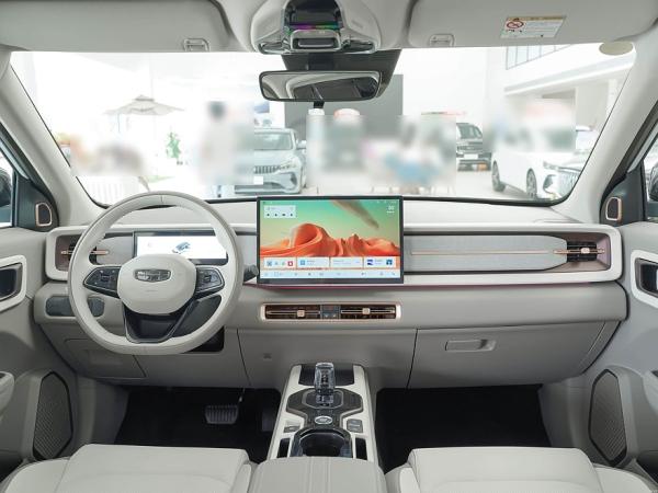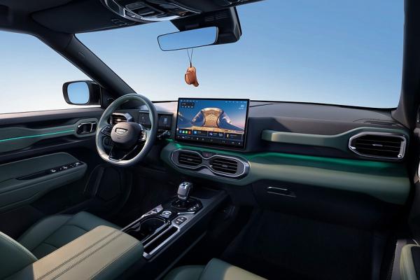 Интерьер оформлен в стиле самого первого Icon: паркетник вновь имеет раздельные экраны приборки и мультимедийной системы, тогда как у модели образца 2022 года они помещены в единый корпус. Мультимедиа – новая, с операционной системой Flyme Auto, которая была разработана совместно с компанией Meizu. У Geely Cowboy аналогичные отдельные дисплеи, но если «суровому» паркетнику вдобавок отрядили переднюю панель от машины из 2020-го, то панель нынешнего Icon менять не стали. Кроссовер нового модельного года по-прежнему имеет прямоугольные центральные дефлекторы обдува вместо «песочных часов», а перед пассажиром нет массивной ручки.
