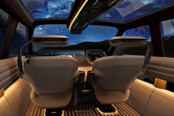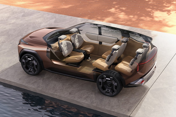 В шестиместном салоне – гигантское табло во всю ширину передней панели. Вообще, это табло состоит из четырех экранов, помещенных в единый корпус. Еще один дисплей встроен в усеченный руль. Кроме того, Mitsubishi Elevance имеет систему AI Co-Driver, то есть ассистента с искусственным интеллектом. Заявлено, что этот помощник «анализирует окружающую обстановку и состояние автомобиля в режиме реального времени, предлагая оптимальные режимы вождения». Ну и еще ассистент может дать «рекомендации по маршруту», соответствующие «образу жизни и предпочтениям» водителя. Передние кресла можно развернуть лицом к галерке.