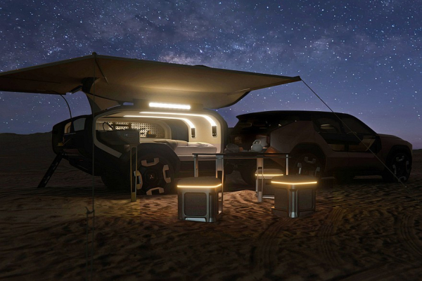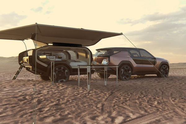 Кроссовер Mitsubishi Elevance представлен вместе с похожим на капсулу «прицепом», обустроенным для комфортной ночевки где-нибудь на природе. В этой капсуле есть «кровать», душ и небольшая кухонька.