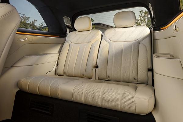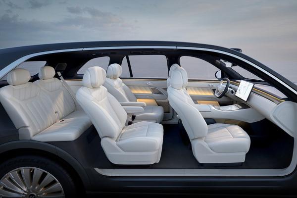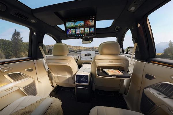 Еще один дисплей прикреплен к потолку. Расположенное посередине правое пассажирское кресло – с выдвижной подставкой для ног. В спинку переднего сиденья встроен откидной столик. Разумеется, кресла имеют подогрев, вентиляцию и массажер. В списке оборудования еще заявлены бардачок с паролем, панорамная крыша, выдвижные подножки.