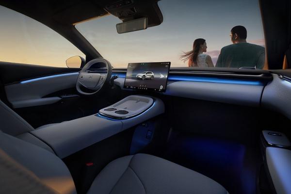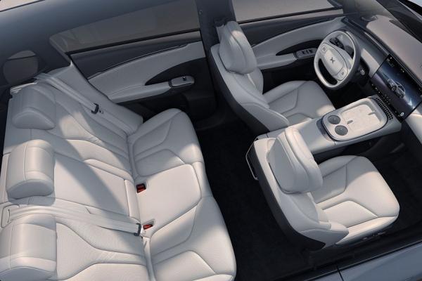 В отделке интерьера использованы кожа Nappa и натуральное дерево. На центральном тоннеле расположены две площадки для беспроводной зарядки смартфонов, еще одна площадка встроена в откидной подлокотник заднего дивана. Кроме того, у задних седоков есть собственный 8-дюймовый экран мультимедиа – он интегрирован в торцевую часть тоннеля. Для модели также заявлены аудиосистема с 20 динамиками, цифровое зеркало заднего вида, подогрев, вентиляция и массажер кресел. Ну и разумеется, в арсенале Xpeng G7 значится продвинутый автопилот (кроссовер имеет 11 камер и три радара миллиметрового диапазона).