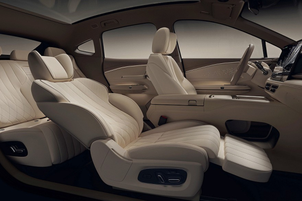 В салоне S600 – новые передняя панель, карты дверей и центральный тоннель, а также обычный круглый руль вместо сплющенного у HT. Экраны стали больше: диагональ приборного составляет 10,25 дюйма, мультимедийной системы – 17,3 дюйма (у Hyptec HT – 8,8 и 14,6 дюйма соответственно). Откидную подставку для ног отныне имеет не только переднее пассажирское кресло, но и задние сиденья. Еще есть подогрев, вентиляция и массажер. Спинки задних кресел можно наклонить назад.