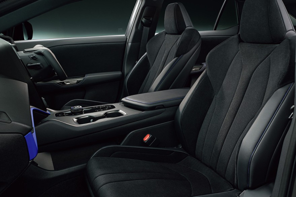 Lexus RZ 600e F Sport Performance получил 21-дюймовые матово-чёрные легкосплавные колёсные диски Enkei, за которыми можно разглядеть 20-дюймовые тормозные диски и синие шестипоршневые алюминиевые моноблочные суппорты спереди. Ещё новой версии на 20 мм занизили подвеску по сравнению с RZ 550e F Sport. В салоне установлен штурвал вместо привычного рулевого колеса, а также имеется синий декор.