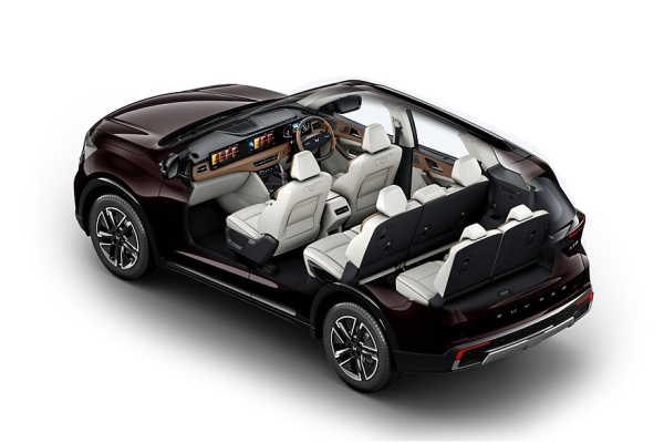 Размеры прежние. Длина Mahindra XUV 7XO равна 4695 мм, ширина – 1890 мм, высота вместе с рейлингами – 1755 мм, колесная база – 2750 мм. Как и раньше, кроссовер бывает шести- или семиместным.