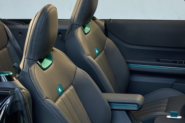 Интерьер Mini.01 получил десятки деталей, окрашенных в тот же зелёный металлик, что и часть наружных панелей кузова, — вставки такого цвета можно увидеть на передней панели, центральной консоли, сиденьях, корпусах динамиков аудиосистемы Harman Kardon, дверных картах и порогах с подсветкой.
