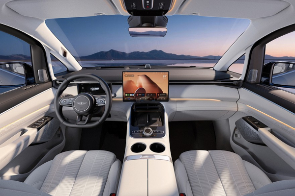 Силовая установка Geely Galaxy V900 включает работающий в режиме генератора бензиновый турбомотор 1.5 (163 л.с.) и два электродвигателя. То есть минивэн уже в базе имеет полный привод. Суммарная отдача – 462 л.с. и 523 Нм. Самому дешевому гибриду досталась батарея емкостью 43,3 кВт*ч, только на электротяге такой V900 проедет 220 км по китайскому циклу CLTC или 172 км по циклу WLTC. У остальных двух исполнений аккумулятор на 50 кВт*ч, дальнобойность в электрическом режиме – 260/202 км (CLTC/WLTC).