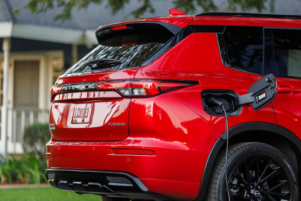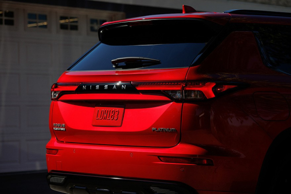 Над радиаторной решеткой кроссовера Rogue PHEV красуется другая вставка, ее оформили в актуальном стиле Nissan. Сверху идет единая хромированная полоска, а по бокам – блестящие же «штрихи». Еще паркетник лишен фирменного для Mitsubishi «икса»: обрамляющие решетку элементы сделаны глянцево-черными и в цвет кузова. А задние фонари Nissan Rogue PHEV объединены между собой черной же плашкой, на которой есть надпись с названием марки.