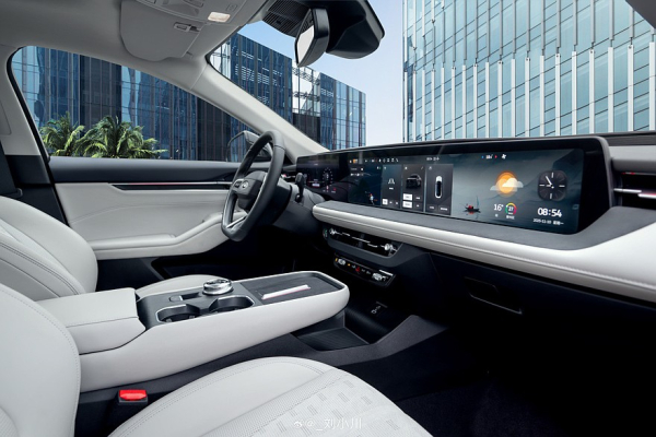 В салоне все так же установлено гигантское 27-дюймовое табло с разрешением 4K. При этом у него отныне более мощный процессор на базе Qualcomm Snapdragon 8155, плюс седану обещан более продвинутый голосовой ассистент. В основании «парящей» консоли между передними креслами появилась площадка для беспроводной зарядки мощностью 50 Вт, подстаканники теперь без шторки.