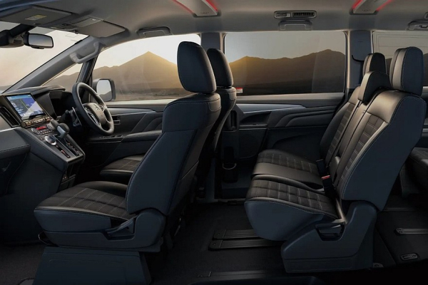 В салоне установили 8-дюймовую виртуальную приборку, она идет уже в базе. На передней панели и дверях появились темно-серые вставки вместо «деревянных». Кресла могут быть обиты похожим на замшу водоотталкивающим материалом, при этом предусмотрена и обивка из натуральной кожи. В нижней части центральной консоли появились USB-разъемы Type-C. За мультимедиа традиционно для Японии нужно доплачивать. Как и раньше, Mitsubishi Delica D:5 бывает в семи- или восьмиместном исполнениях.