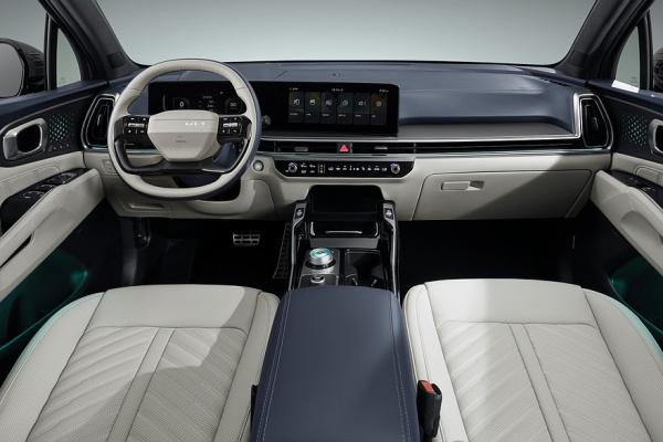 Внешность на этот раз менять не стали, разве что для гибрида HEV (то есть без возможности зарядки от электросети) предусмотрены 19-дюймовые диски нового дизайна. Главная обновка внутри – четырехспицевый приплюснутый руль, тогда как прежний Kia Sorento имеет круглую трехспицевую «баранку». Кроме того, была расширена фоновая подсветка – она отныне охватывает и карманы в передних дверях.