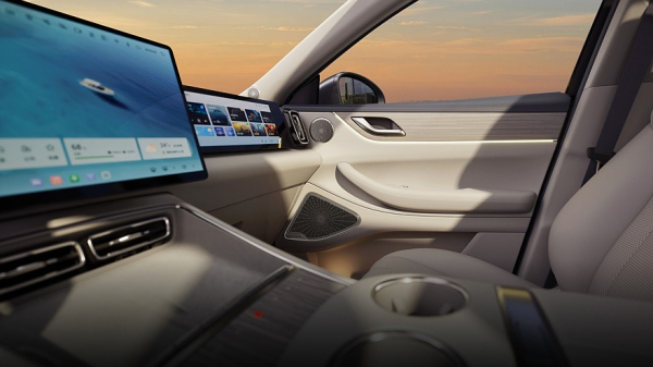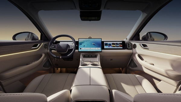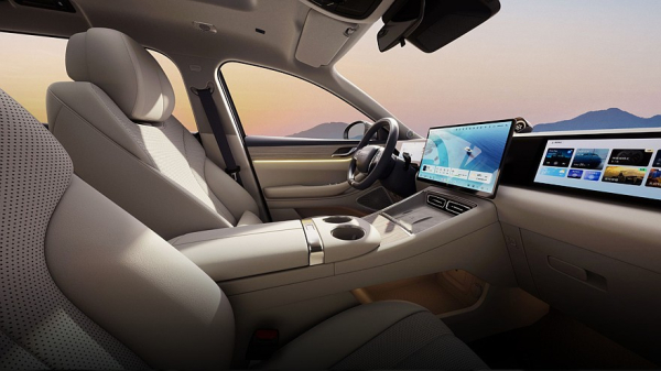 У центрального тачскрина информационно-развлекательной системы диагональ равна 15,6 дюйма. Кроме того, предусмотрен ещё отдельный сенсорный экран на 12,3 дюйма, предназначенный для переднего пассажира. На центральной консоли расположено устройство для беспроводной зарядки смартфонов, под ним – ряд физических кнопок, ниже – пара больших подстаканников.