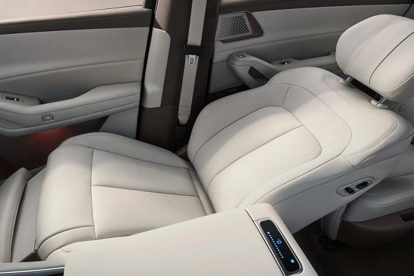 У кроссовера Denza N8L две комплектации против трех у Denza N9. При этом вопреки ожиданиям «восьмерка» ничуть не беднее. В списке стандартного оборудования значатся: аудиосистема с 20 динамиками, две площадки для беспроводной зарядки, подогрев, вентиляция и массажер кресел первого и второго ряда (переднее пассажирское сиденье – еще и с подставкой для ног), подогрев сидений третьего ряда, откидные столики (встроены в спинки передних сидений) и аж два бокса с функциями охлаждения и подогрева (отделение в боксе-подлокотнике и выдвижной ящик в торце тоннеля). А еще N8L по умолчанию имеет фирменный автопилот God’s Eye B от BYD, в комплекс входят лидар, множество камер и радаров.