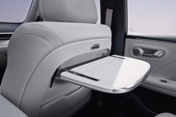 Внутри паркетник подражает братьям. В пятиместном салоне Aion i60 тоже установлены раздельные экраны приборки и мультимедиа, двухспицевый руль и двухэтажный центральный тоннель, в верхней части которого расположены площадка для беспроводной зарядки мощностью 50 Вт, лоток для мелочевки и неприкрытые подстаканники. За управление трансмиссией отвечает подрулевой рычажок. Кресла – с вентиляцией, подогревом и массажером. В спинку переднего пассажирского сиденья встроен столик. А спинки задних сидений можно откидывать назад.