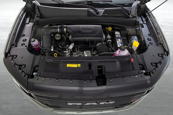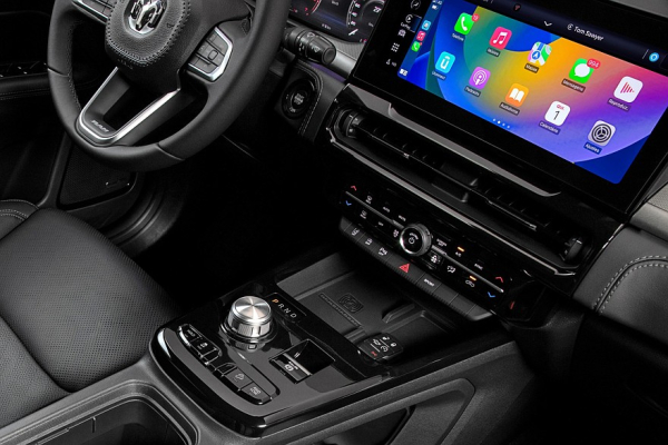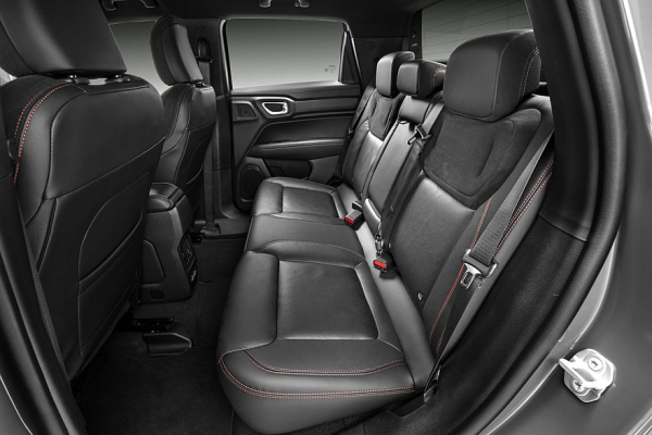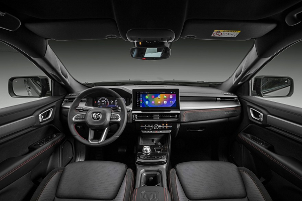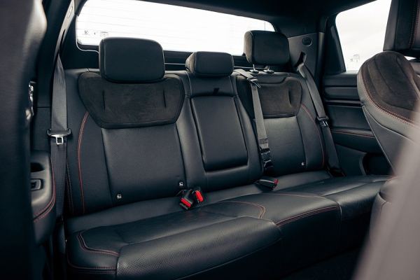 Кожаная отделка салона есть уже в «базе», а на версии R/T есть ещё и вставки из замши. Приборный экран — 10,3-дюймовый, мультимедийный — 12,3-дюймовый. В стандартное оснащение входят двухзонный климат-контроль, электропривод регулировок кресла водителя, шесть USB-портов плюс полка с беспроводной зарядкой для смартфона. Версия R/T вдобавок щеголяет премиальной 360-ваттной аудиосистемой Harman Kardon с девятью динамиками. Для хранения мелких вещей в кабине предусмотрены различные полочки, ящички и карманы общим объёмом 35,4 л.