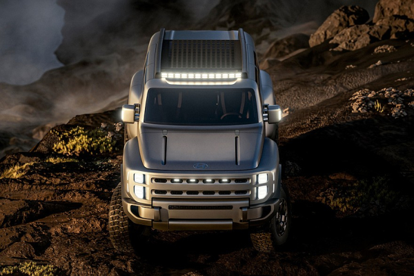 Концепт Hyundai Boulder создан американской командой дизайнеров. Внешность выполнена в нарочито брутальном стиле. Среди особенностей экстерьера – раздутые бока в стиле классического Land Rover Defender, внушительные бамперы, прорези в радиаторной решетке, вертикальные блоки фар и задних фонарей, люстра на крыше.