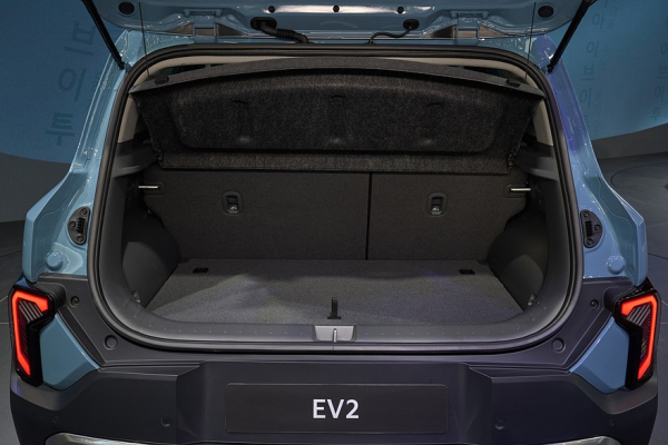 Габаритная длина Kia EV2 составляет 4060 мм (на 240 мм меньше, чем у Kia EV3 в европейской спецификации), ширина – 1800 мм (на 50 мм меньше), высота – 1575 мм (на 15 мм больше), а расстояние между осями составляет 2565 мм (на 115 мм короче, чем у EV3). Объём багажника варьируется от 362 до 403 литров – в зависимости от положения второго сдвижного ряда сидений. При сложенном заднем диване грузовое пространство можно увеличить до 1201 литра. Объём переднего багажника равен 15 литрам.