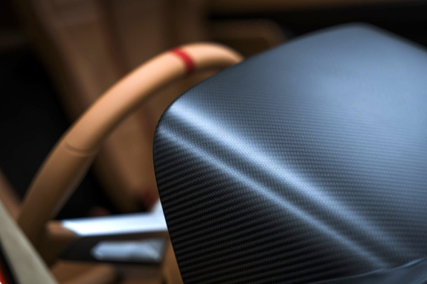 Салон переработан более радикально, чем внешность. Новая углепластиковая передняя панель добавляет кузову жёсткости, вдобавок она визуально облегчена за счёт компактных круглых воздуховодов вместо стоковых прямоугольных. Центральная консоль удалена, поэтому три оставшихся от неё прибора словно парят в воздухе — на самом деле каждый прибор получил свой углепластиковый корпус и оправу из фрезерованного металла. Также из фрезерованного металла выполнены спицы нового руля, подрулевые рычажки, элементы рычага коробки передач, педали, кнопки и ряд других мелких элементов. Дверные карты и центральный тоннель переделаны. Установлены новые лёгкие ковшеобразные сиденья с интегральными подголовниками. Основные материалы отделки — натуральная кожа, замша и угепластик. Цветовые сочетания выбирает заказчик.