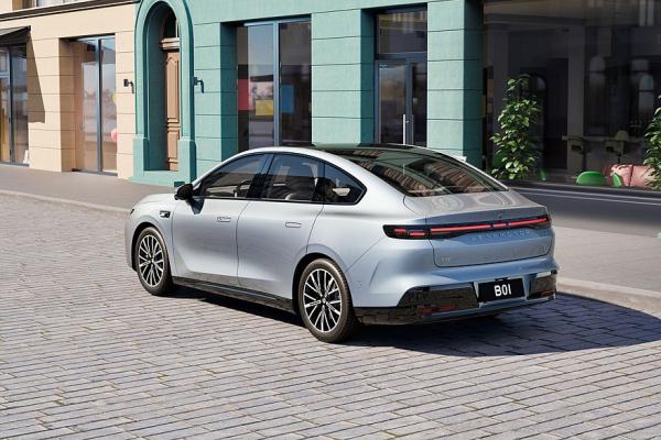 «Личико» у седана практически такое же, как у кроссовера. Но задний бампер – оригинальный. Среди других особенностей внешности Leapmotor B01 – выдвижные ручки дверей и монофонарь. Четырехдверка по умолчанию имеет 18-дюймовые колеса.