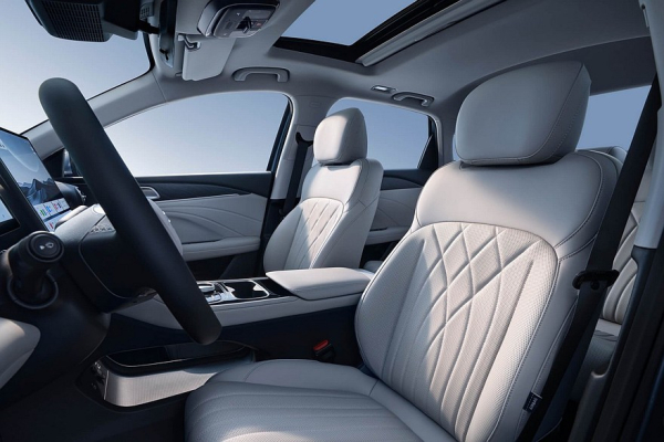 Внутри – двухспицевый руль, двухэтажный центральный тоннель и раздельные экраны приборки (10,2 дюйма) и мультимедийной системы (14,6 дюйма). Мультимедиа работает на операционке Flyme Auto. Привычного селектора коробки тут нет, за переключение передач отвечает подрулевой рычажок.