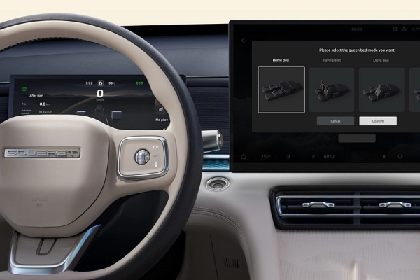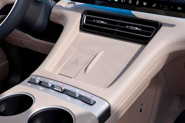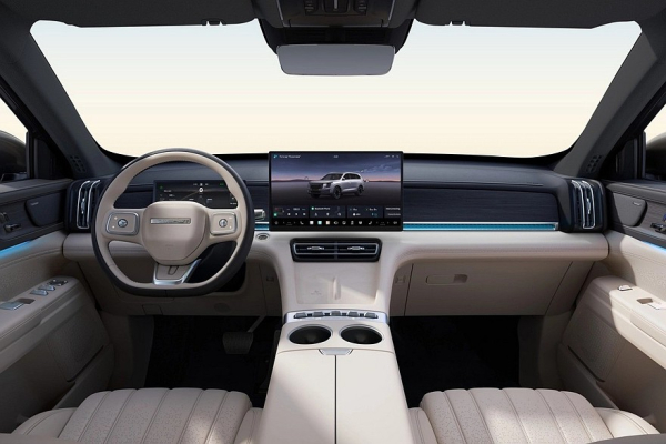Если исходный паркетник бывает пяти- или семиместным, то Soueast S08 пока представлен только в трехрядном исполнении. Внутри кроссовер также повторил Jetour X70L. Тут раздельные экраны приборки (10,25 дюйма) и мультимедийной системы (15,6 дюйма), центральный планшет можно наклонять вправо или влево. Управление трансмиссией возложено на подрулевой рычажок. На тоннеле расположены беспроводная площадка для зарядки мощностью 50 Вт, ряд «объемных» клавиш и пара подстаканников.