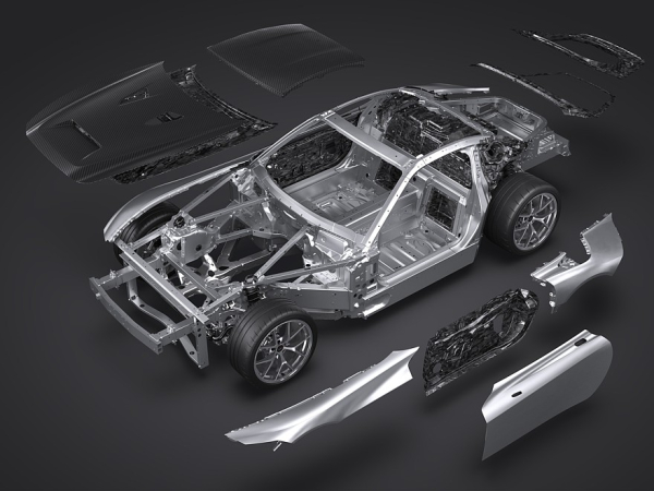 Габаритная длина GR GT — 4820 мм, ширина — 2000 мм, высота — 1195 мм, колёсная база — 2725 мм. Силовой каркас кузова целиком изготовлен из алюминия, при этом многие его элементы — это экструдированные профили, скреплённые заклёпками или болтами. Часть элементов внешней и внутренней обшивки также выполнена из алюминия, часть — из углепластика (капот, крыша, внутренние панели дверей, задняя стенка салона, рамка заднего стекла и другие мелкие детали).