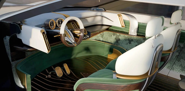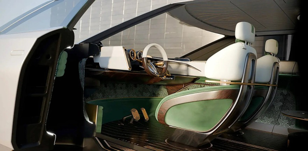 Место водителя выполнено в неоклассическом стиле с минимальным количеством элементов управления. В отделке широко используются натуральное дерево, кожа и дорогой текстиль. Щиток приборов — это два больших цифро-аналоговых циферблата. Мультимедийного экрана нет, его заменяет ИИ, через который можно задать любые настройки.