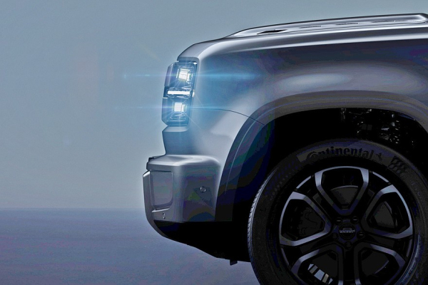Среди особенностей внешности новинки – «прямоугольный» кузов, вертикальные блоки фар и фонарей, «ступеньки» за задними дверями и наружная запаска. Багажная дверь наверняка распашная. Синяя подсветка – признак продвинутого автопилота, как и лидар над лобовым стеклом. Не исключено, что новый SUV крупнее актуального рамного вездехода Haval H9. Длина последнего – 4950 или 5070 мм (без запаски и с нею), колесная база – 2850 мм.